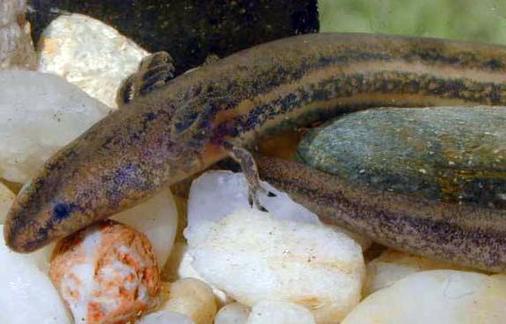 There are only five extant (living) species of eel-like salamanders in this family. They are found in the southeastern United States and in the Mississippi Valley.