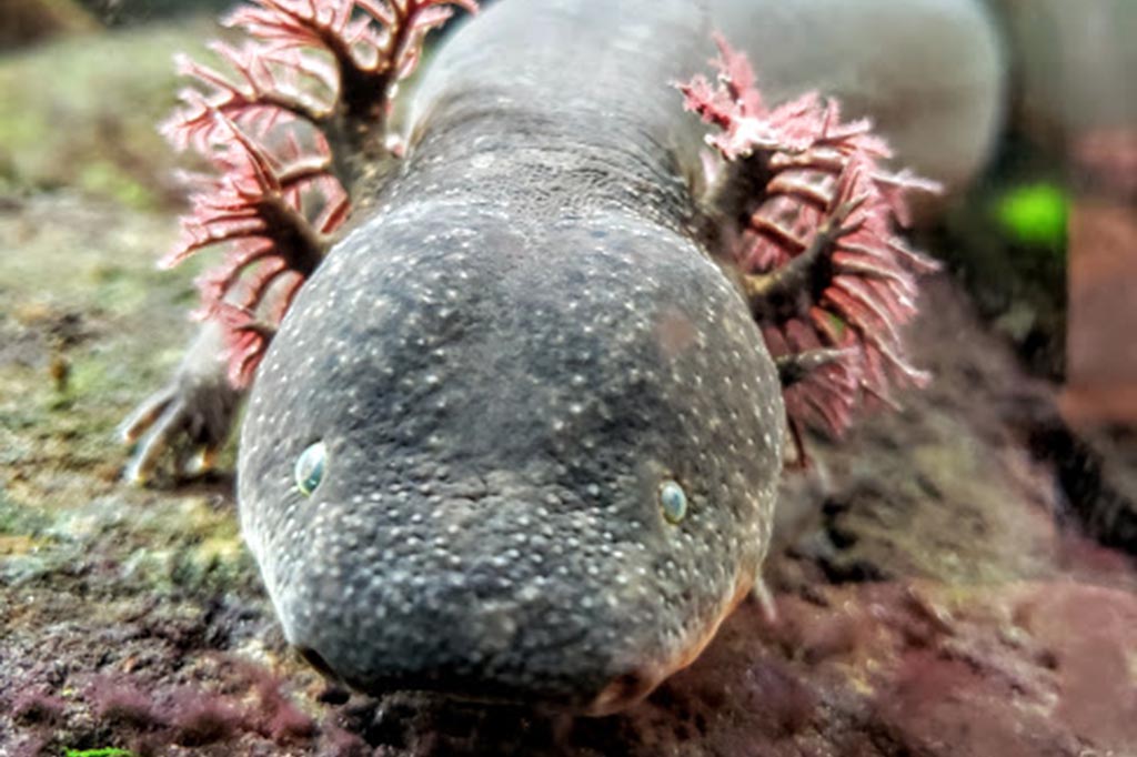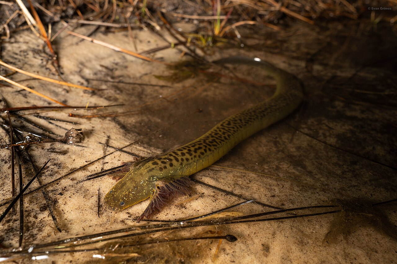Sirens are neotenic, that means they don’t lose the characteristics they had as larvae when they become adults. They keep their large external gills and gill slits.