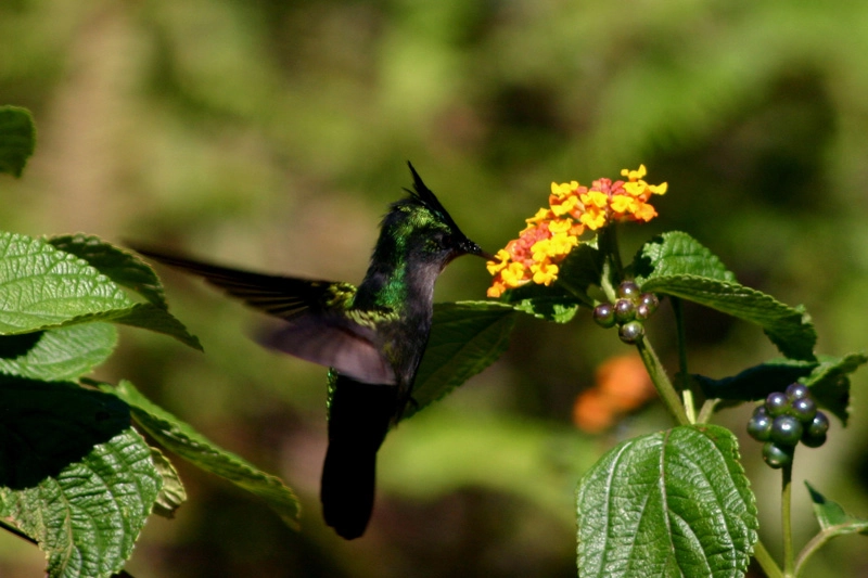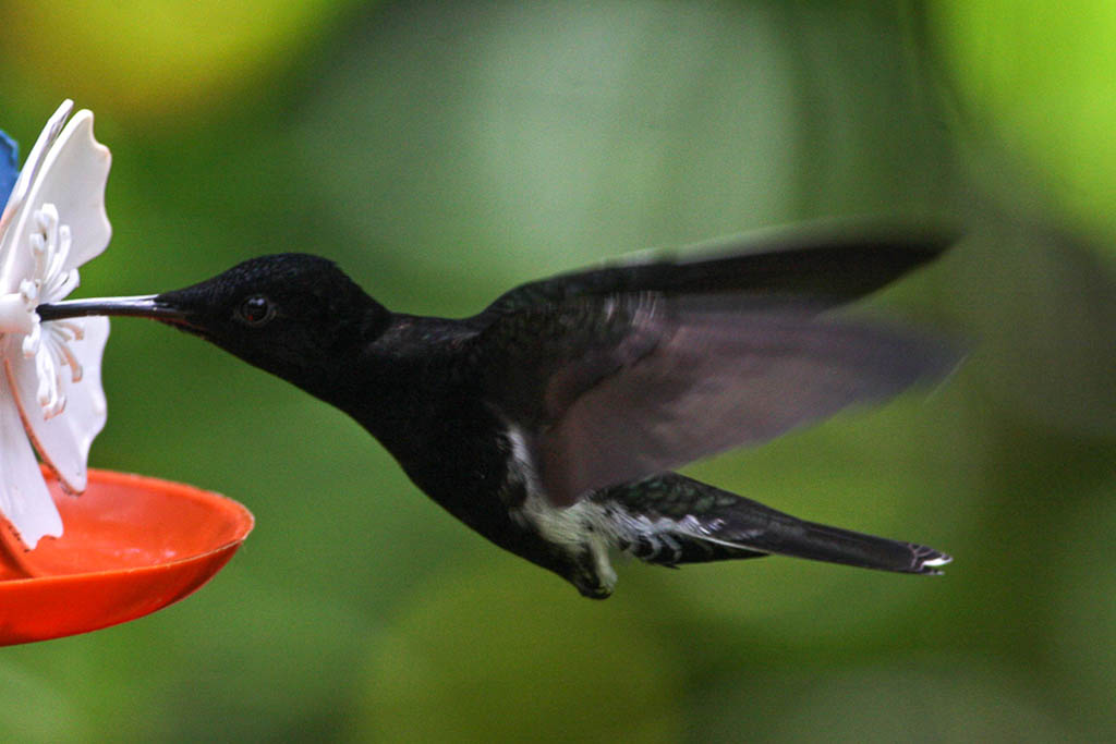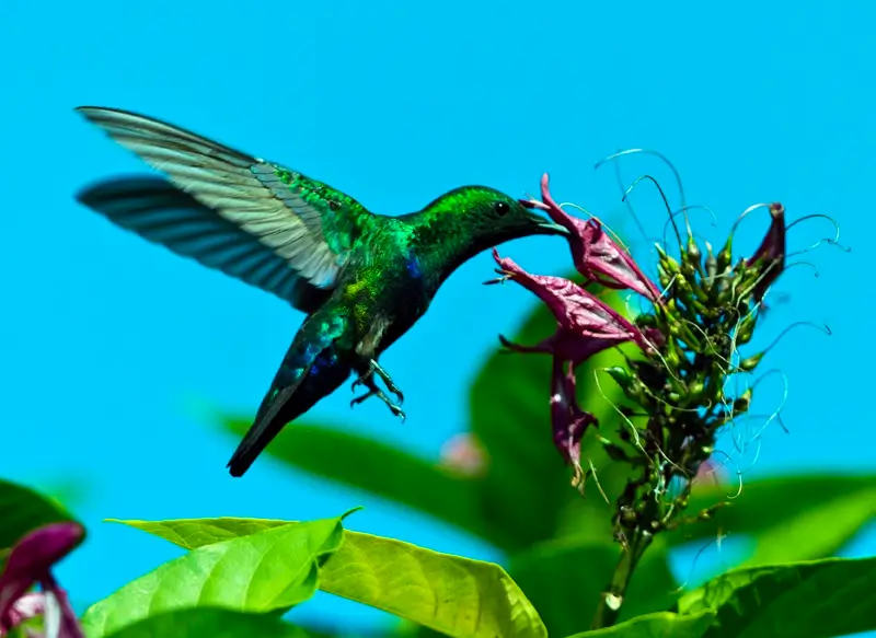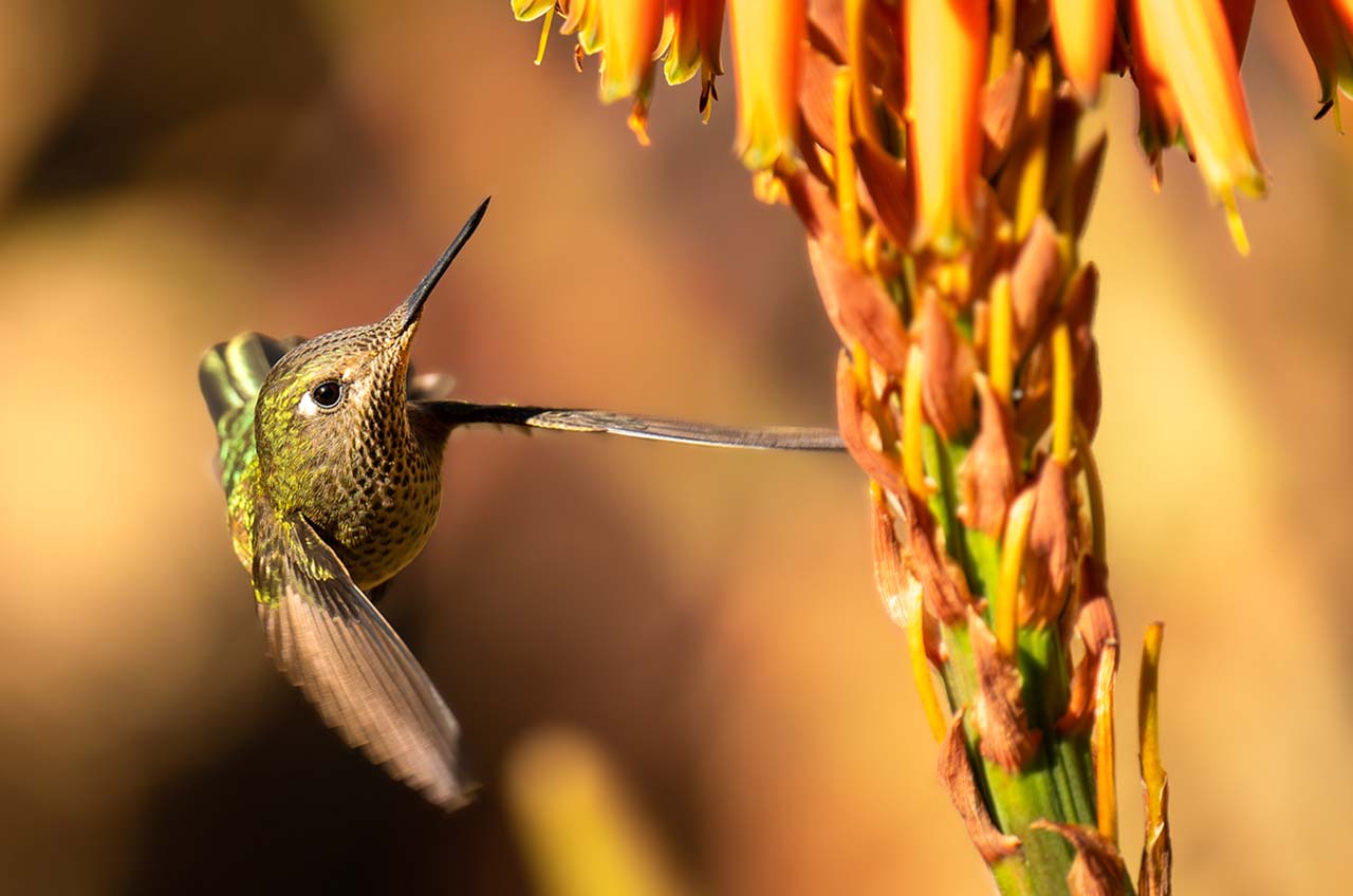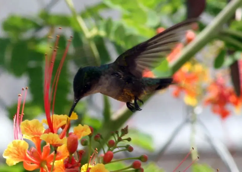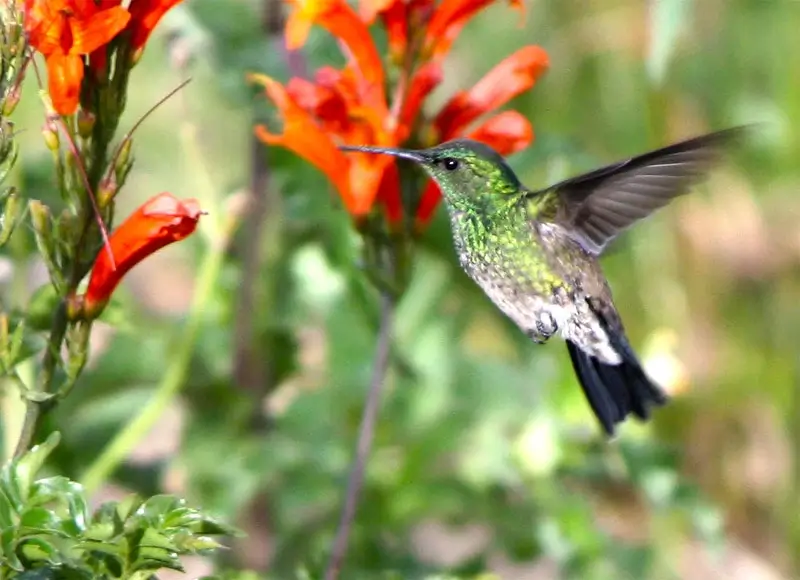 They are usually found in areas with lots of nectar-producing flowers. They hover over flowers as they gather nectar with their wings beating as fast a 78 times per second!
