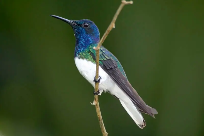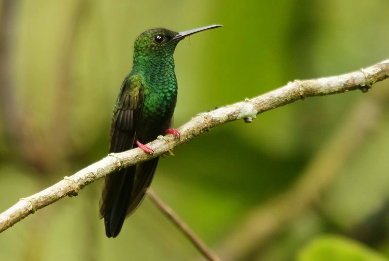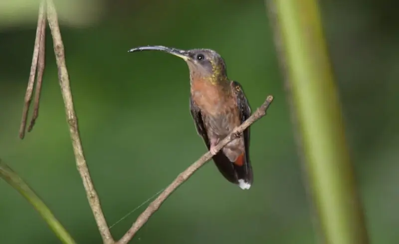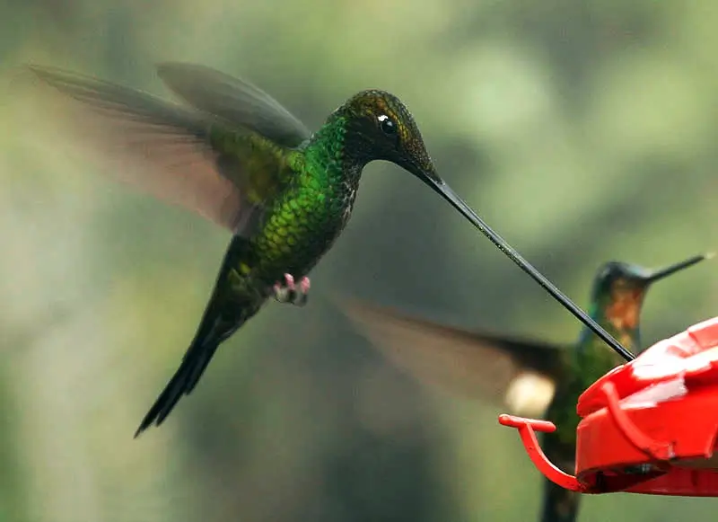They are 2.5-4.5 inches in length and have long, thin bills and a long tongue that they use to eat nectar. Hummingbirds have very tiny feet and never walk on the ground.
