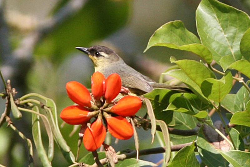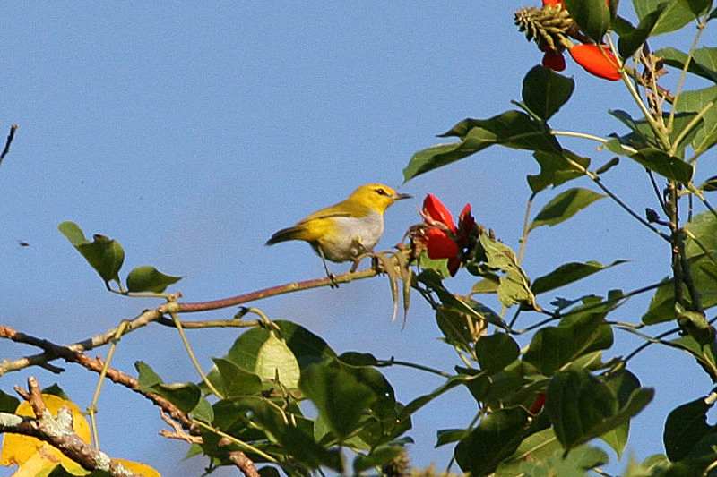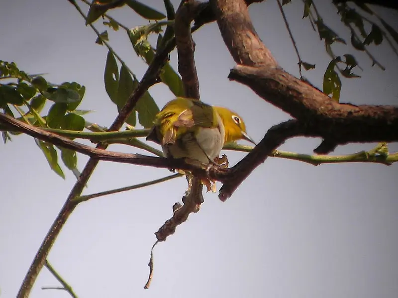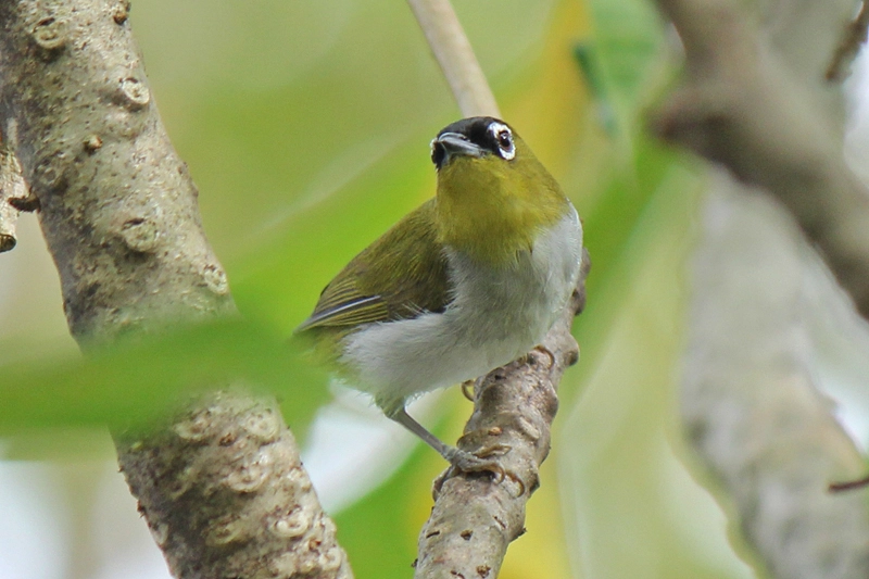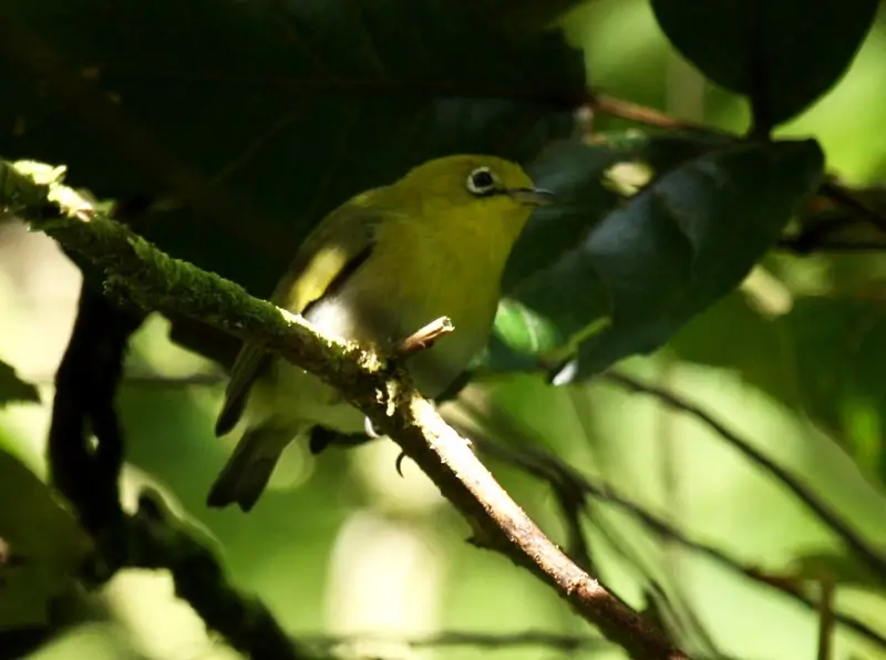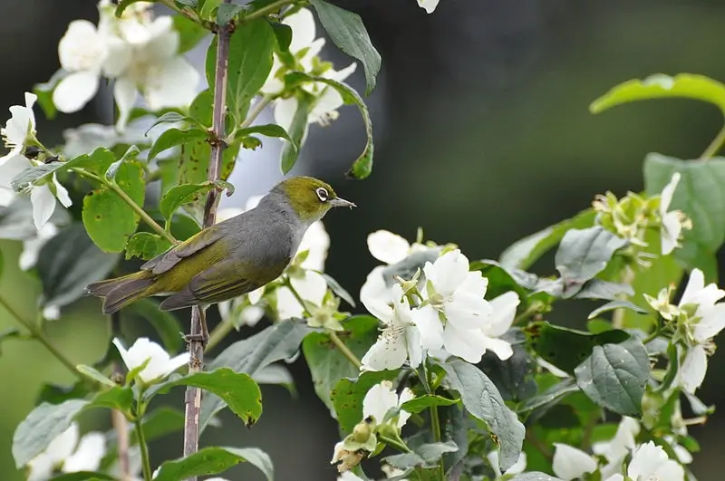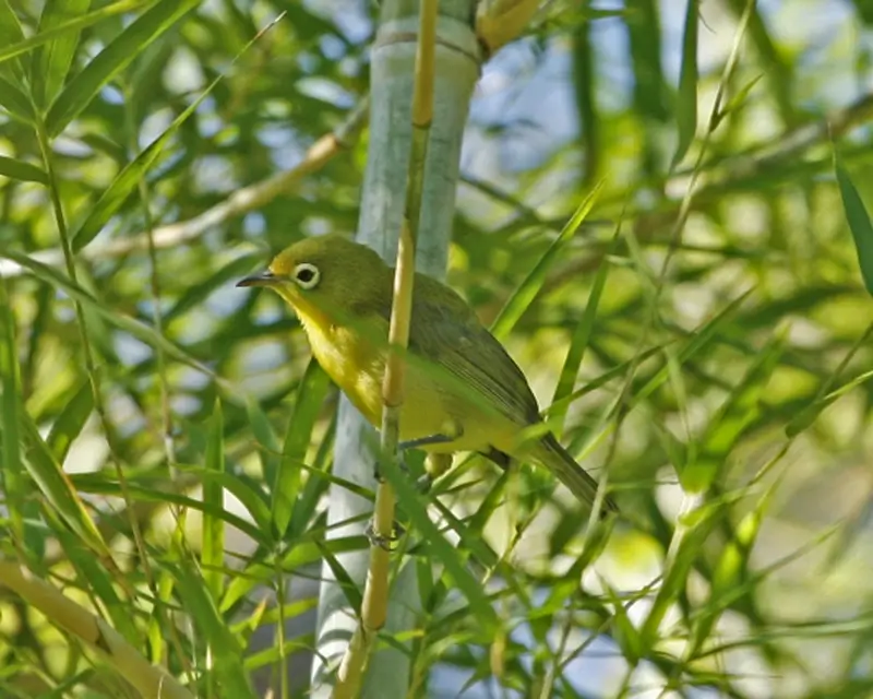 They have large white eye rings, short, pointed bills, short, rounded wings, and medium-length, square tails.